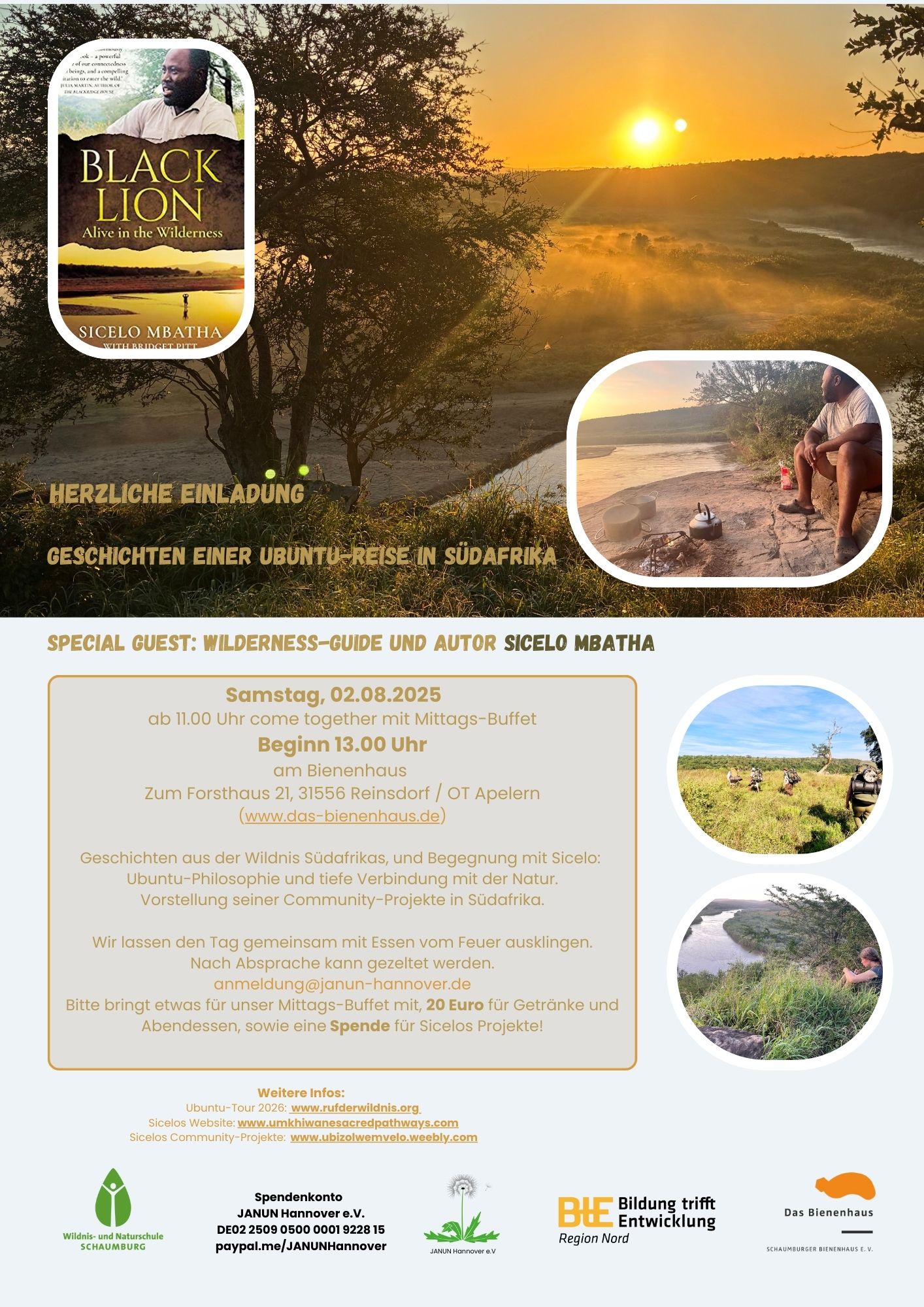 Besonderer Gast ist Sicelo Mbatha, Wilderness-Guide aus Südafrika und Leiter der Ubuntu-Tour